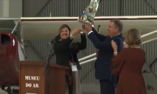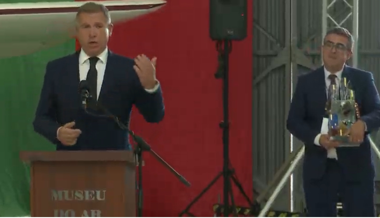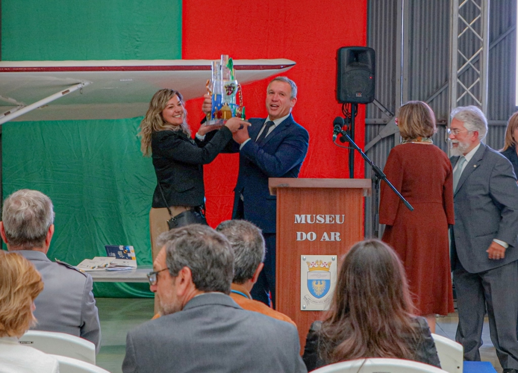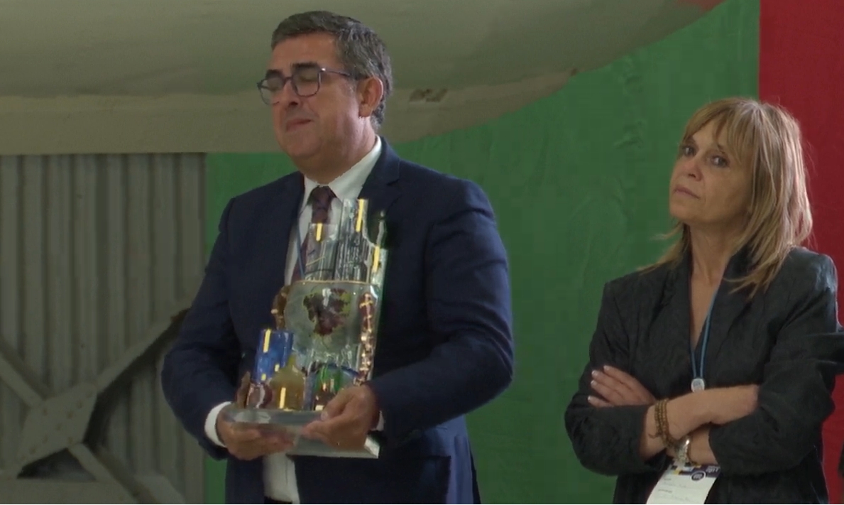 Momento em que o presidente da Câmara de Abrantes recebe o Prémio Museu do Ano
