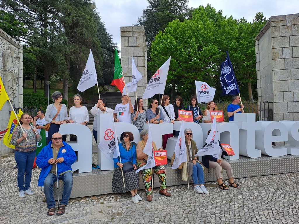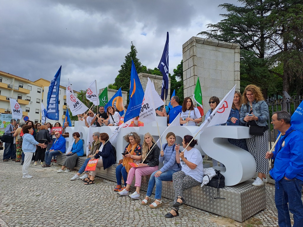 Foi à hora de almoço que o marco “Abrantes”, localizado por estes dias junto à entrada para o Jardim do Alto de Santo António foi “assaltado” pelos docentes que aproveitaram para mostrar aos muitos automóveis que circulavam pela Avenida 25 de Abril e Avenida das Forças Armadas que continuam com a sua luta.