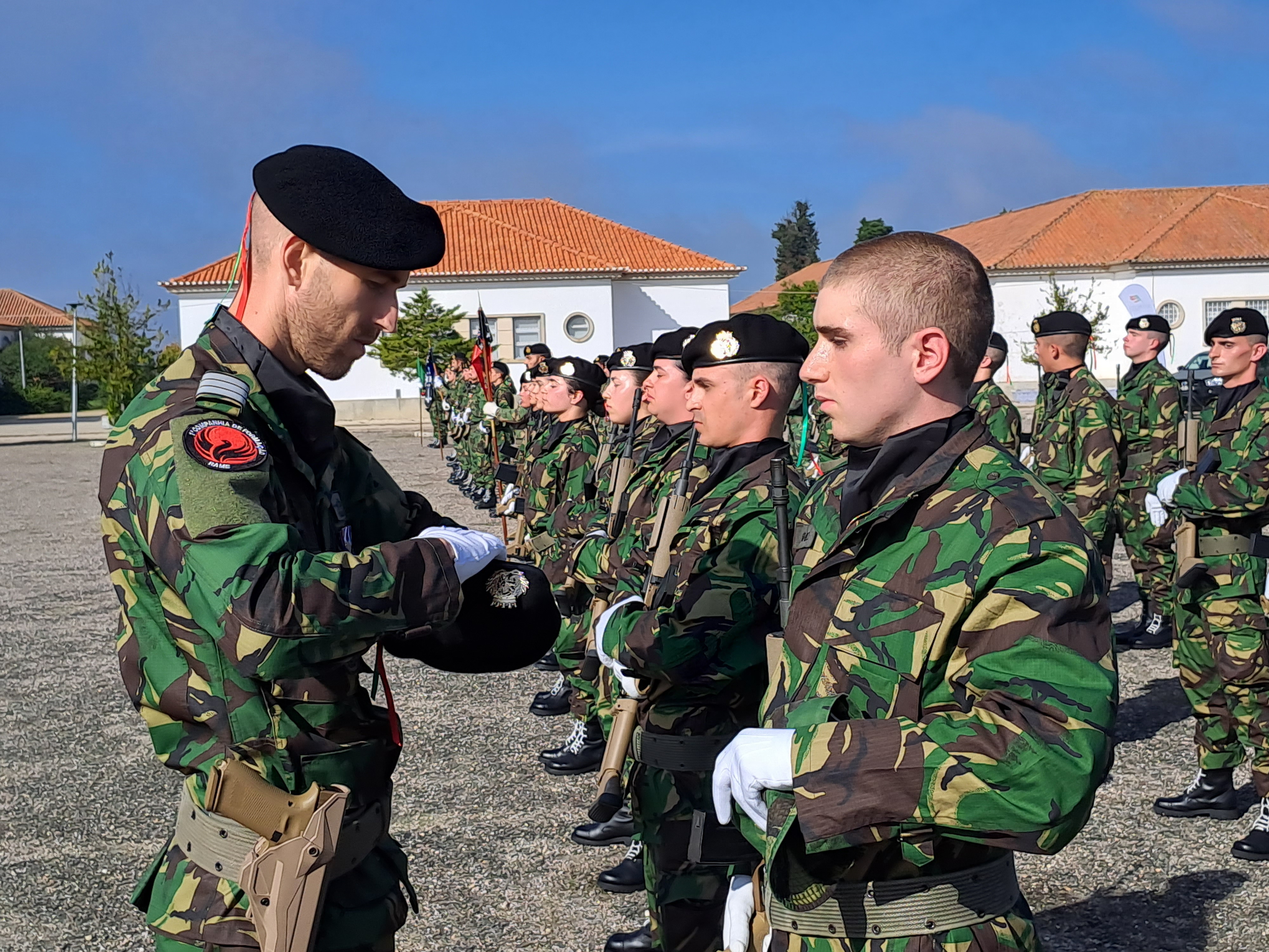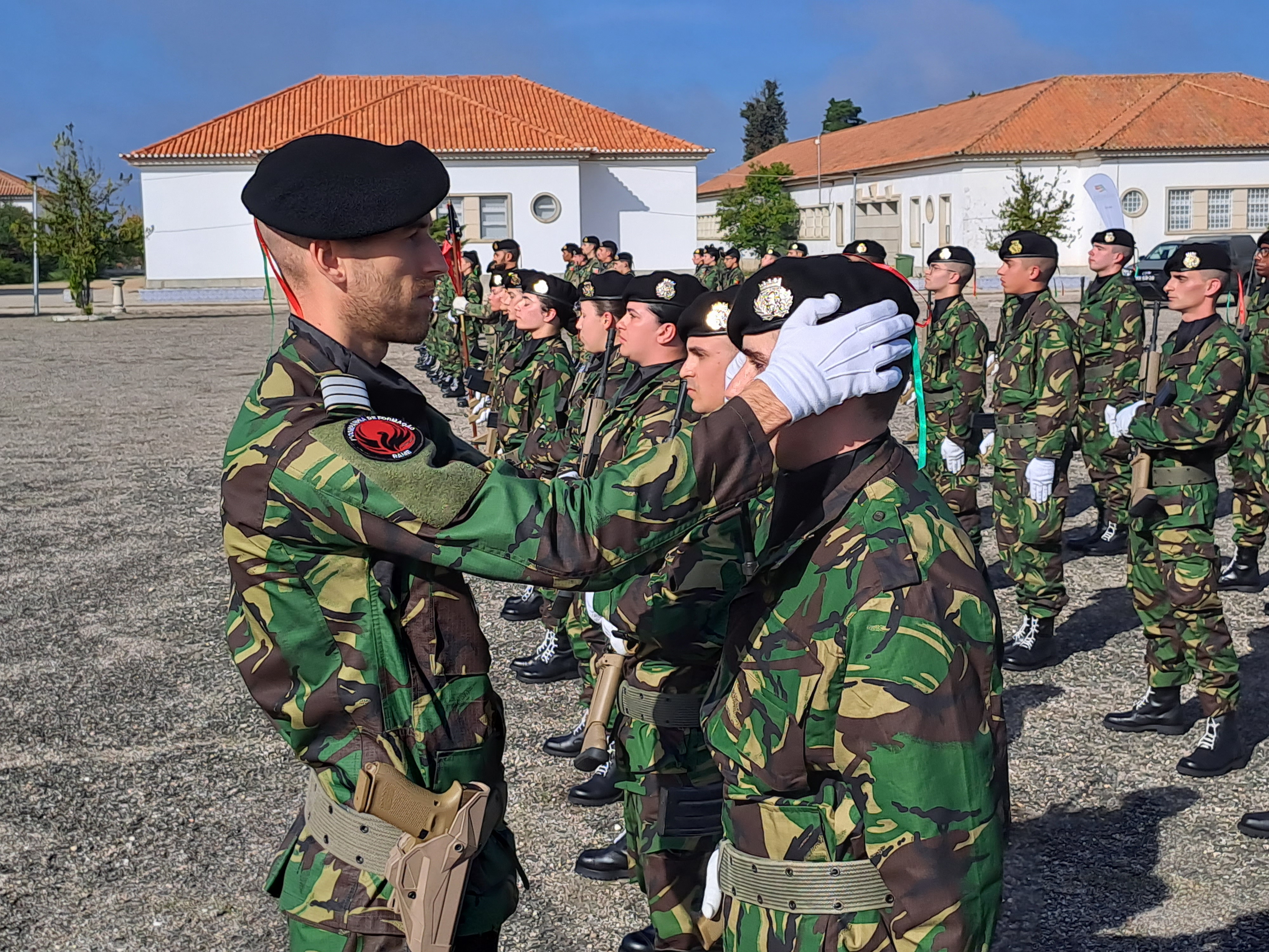 A seguir ao Juramento de bandeira foram chamados os três sodados do curso que tiveram melhor classificação em 3 áreas: mérito escolar, Edmilson Sanches (18,44); mérito pessoal Alexande Pedro (16); e desembaraço físico Bernardo Ferreira (14,90). Os formadores dos, agora soldados-recruta colocaram a boina em substituição do quico. A boina, com insígnia à esquerda, surgiu em 1963 com os caçadores especiais, tendo depois sido generalizada pelo exército. É um elemento integrador do cidadão na comunidade militar.