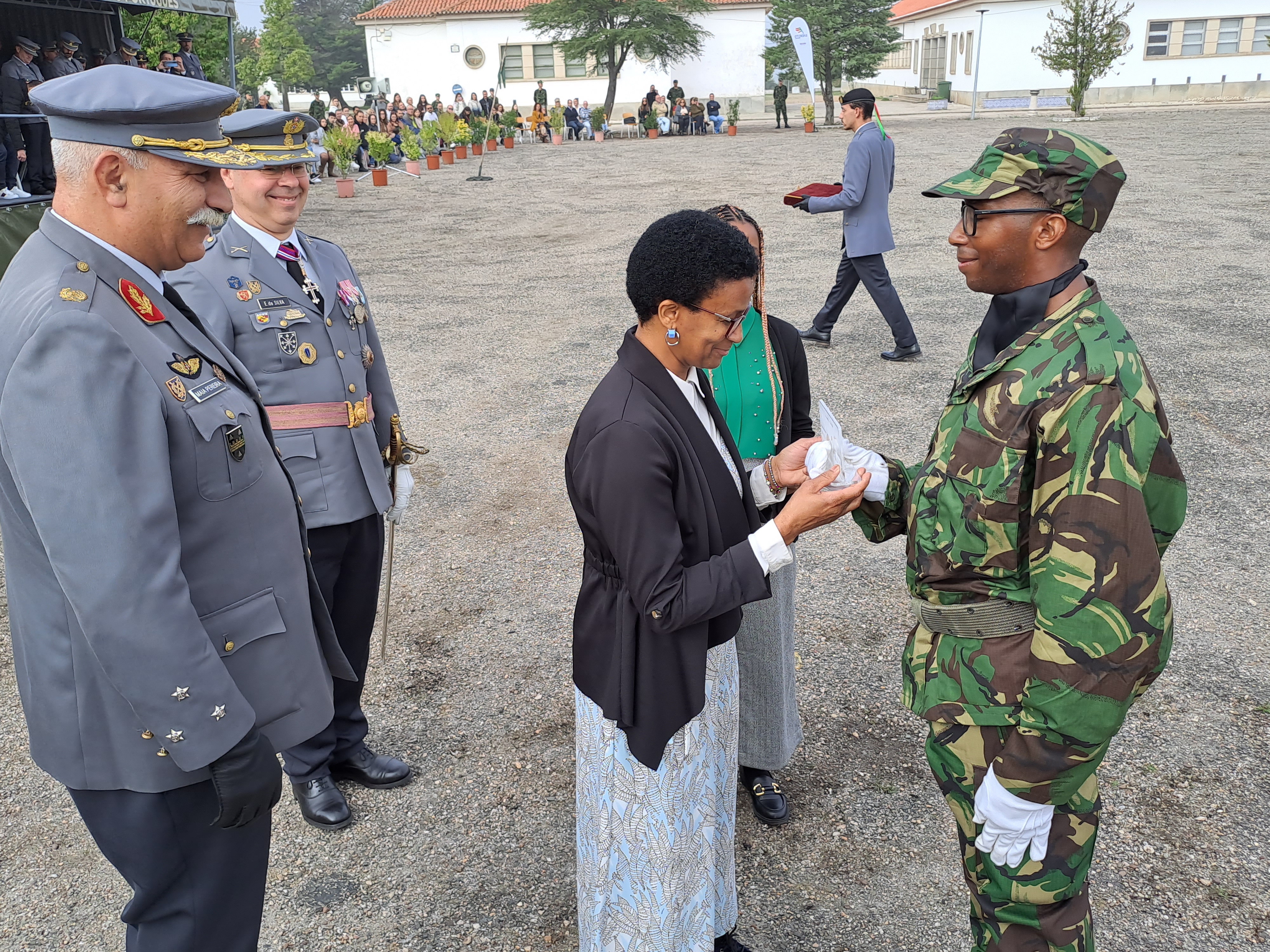 Logo após decorreu a cerimónia de juramento de bandeira em que 26 jovens fizeram a sua formação e, para além das cerimónias militares, vão receber um diploma de certificação das competências adquiridas. O soldado-recruta que teve melhor classificação deste curso, Edmilson Sanches, com 16,77 valores recebeu a distinção das mãos da mãe e da irmã, após terem sido convidadas pelo comandante das forças terrestres.