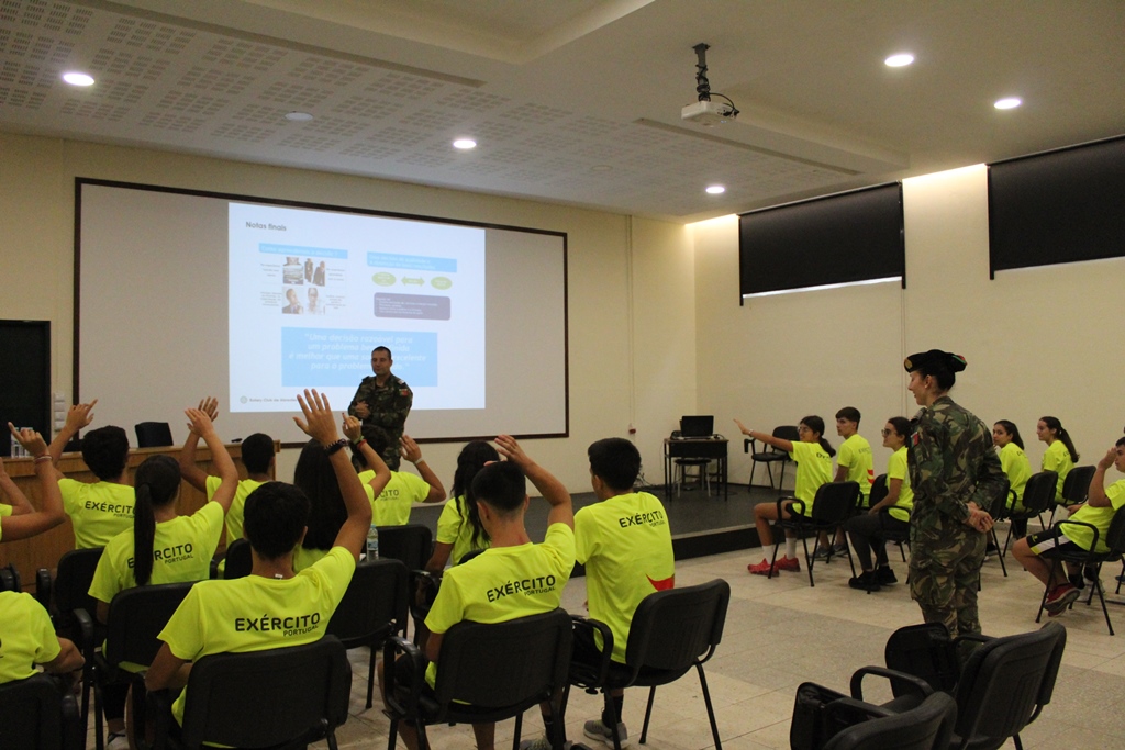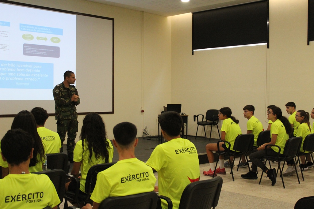 Da mesma forma, Maria Claro, outra jovem de Abrantes, salientou o esclarecedor que tem sido esta experiência que ainda está a iniciar: “A apresentação foi muito interessante, fez-me pensar sobre algumas coisas que podia e devia mudar, foi esclarecedora. É muito importante falarmos, por exemplo, do stress, sobretudo agora na escola, por isso, gostei bastante... Não vinha com uma ideia assim muito fixa, mas não está a sair muito do que comecei a pensar sobre o que seria, está a ser bom, espero sair daqui mais confiante, com uma visão diferente e com novas experiências do que é também aqui a vida na tropa e o que é ser um líder e a toma de decisões”.