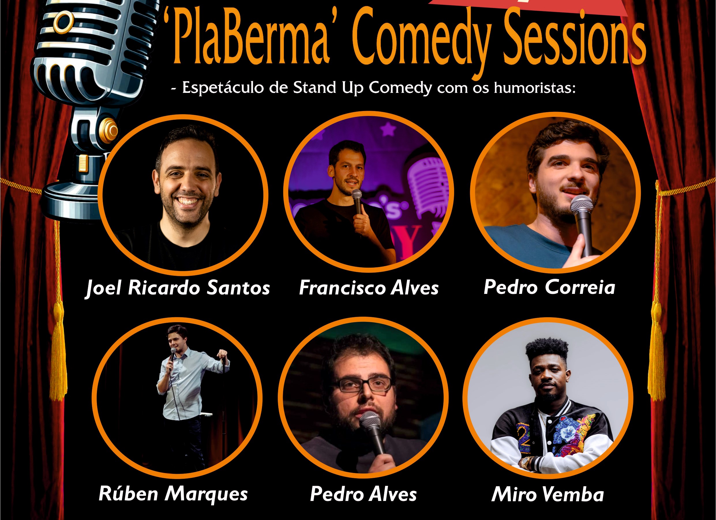 O Auditório Municipal Monsenhor Dr. José Maria Félix, em Vila de Rei, vai receber este sábado, 23 de novembro, a segunda noite da Quinzena do Teatro Solidário de Vila de Rei, com o “PlaBerma Comedy Sessions”, um espetáculo de ‘Stand Up Comedy’ que contará com a presença dos humoristas Joel Ricardo Santos, Rúben Marques, Francisco Alves, Pedro Correia, Pedro Alves e Miro Vemba.