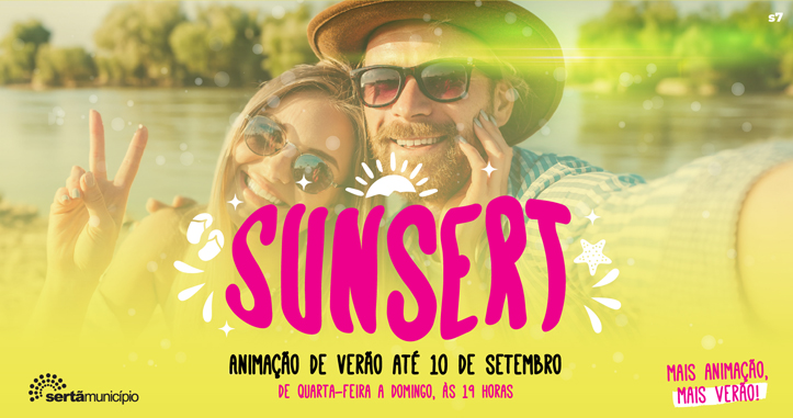 Esta quarta-feira, dia 23 de agosto, começa uma nova semana do Sunsert, o programa de animação de verão que decorre até 10 de setembro, de quarta-feira a domingo, das 19 às 20 horas, em diversos locais de lazer do concelho, numa iniciativa promovida pelo Município da Sertã.