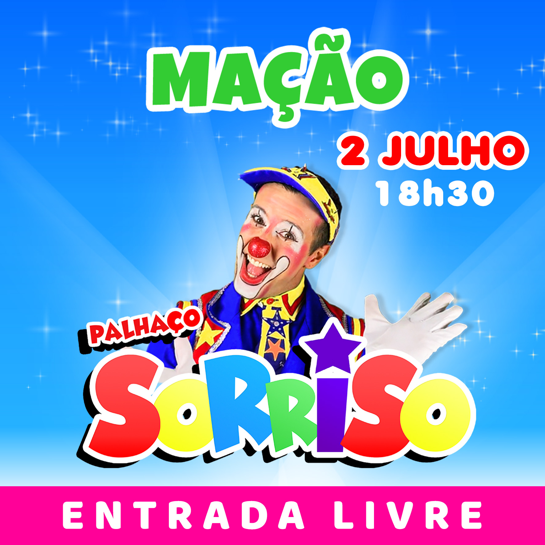 O Palhaço Sorriso é presença confirmada em Mação para um espetáculo mágico e musical para as crianças e para toda a família. A estrela do TikTok com milhares de seguidores em todo o mundo atuará já neste domingo, dia 2 de julho, pelas 18h30, na Feira Mostra de Mação.