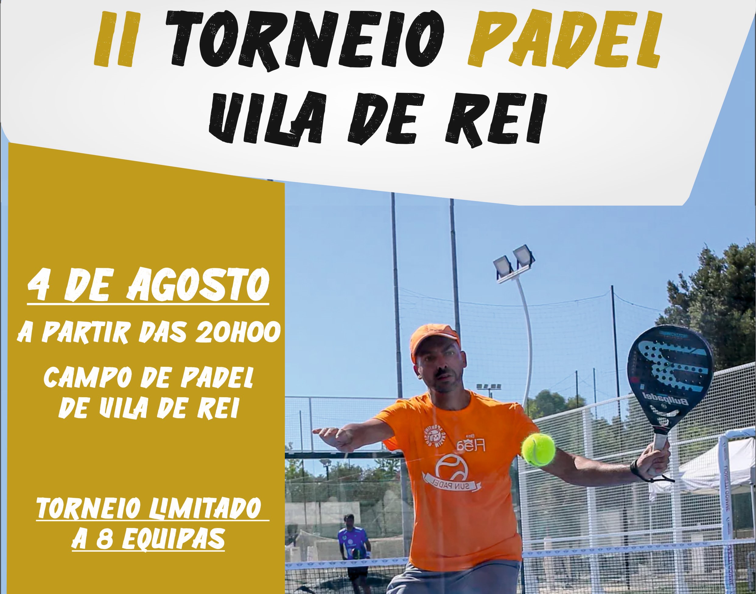 O Campo de Padel de Vila de Rei vai receber, no dia 4 de agosto, a segunda edição do Torneio de Padel de Vila de Rei, numa iniciativa integrada na programação desportiva da XXXII Feira de Enchidos, Queijo e Mel.