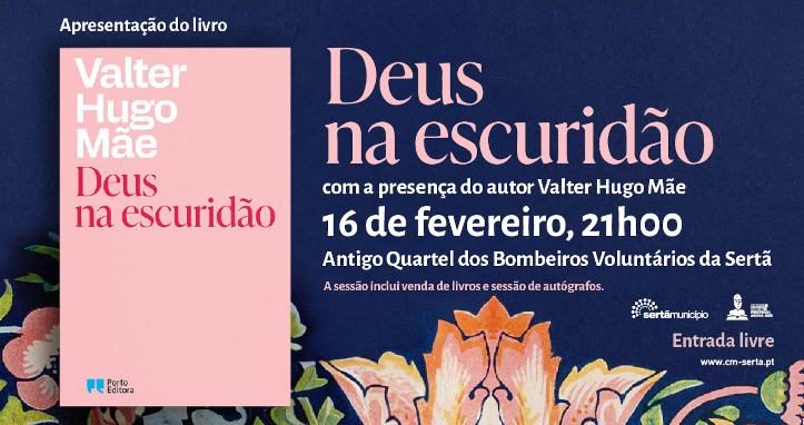O autor multipremiado e um do mais conceituados a escrever em língua portuguesa estará na Sertã para apresentar este novo livro, que completa a tetralogia Irmãos, Ilhas e Ausências. Na ocasião, além da conversa com Valter Hugo Mãe, decorrerá uma sessão de autógrafos, podendo os interessados adquirir também o novo livro «Deus na escuridão».
