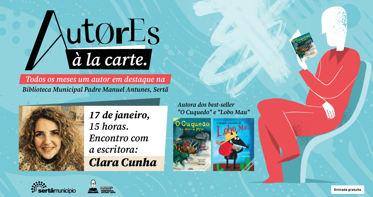 A escritora de literatura infantojuvenil Clara Cunha é o destaque do mês de janeiro, que estará presente na Biblioteca Municipal no dia 17 de janeiro, sábado, pelas 15 horas. Licenciada em Educação de Infância, Clara Cunha é a autora de coleções best-seller como o “O Cuquedo” ou “Lobo Mau”, livros que se encontram publicados no Brasil, Taiwan ou China. O encontro com a autora é de entrada livre e contará com uma sessão de autógrafos no final.
