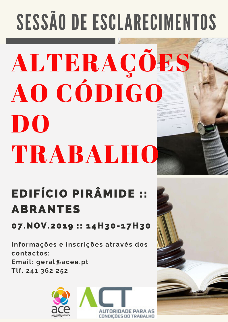 A ACE – Associação Comercial e Empresarial de Abrantes, Constância, Sardoal, Mação e Vila de Rei, vai promover, no próximo dia 7 de novembro, uma sessão de esclarecimento sobre as alterações ao Código do Trabalho.