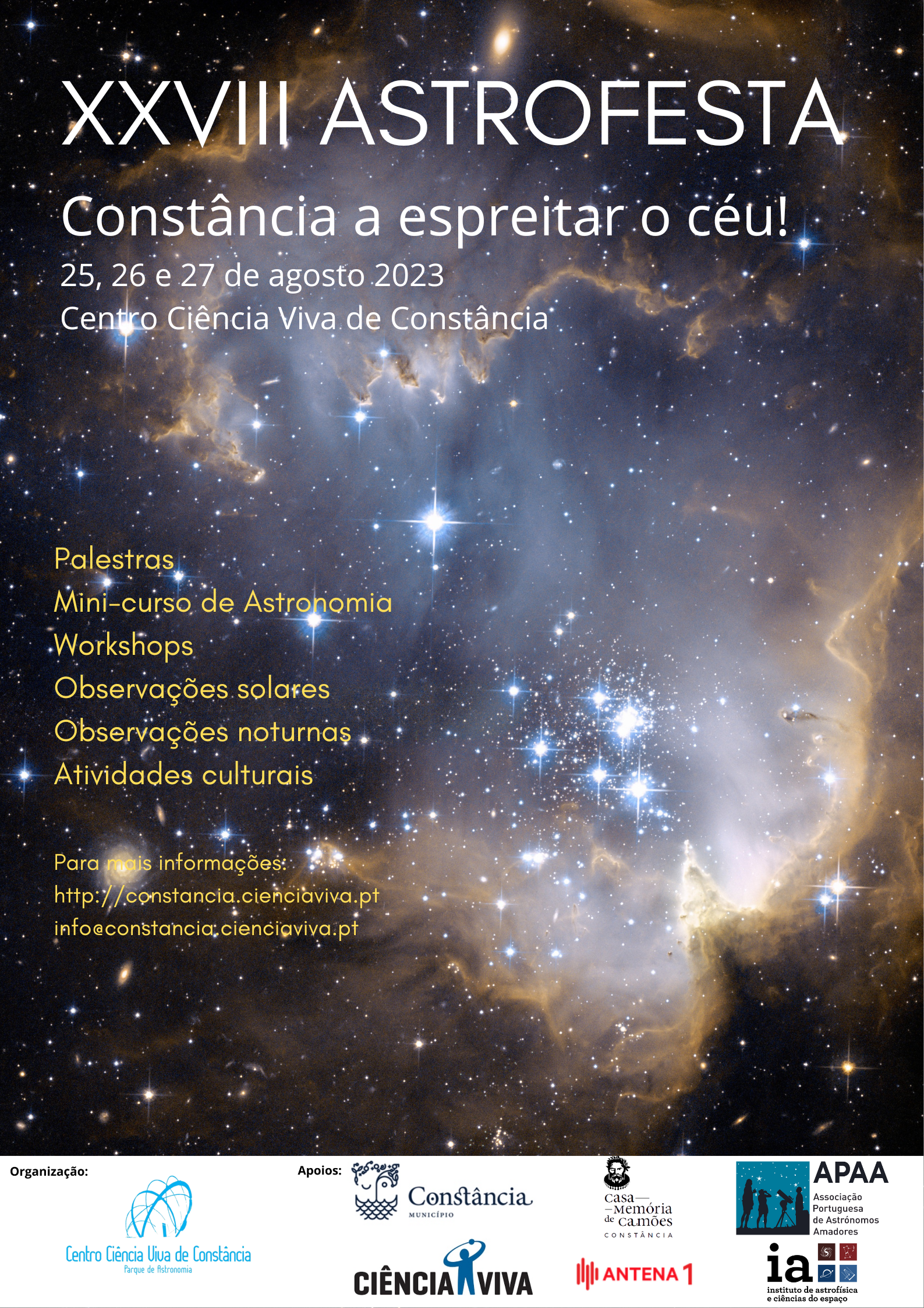 Vai decorrer no próximo fim de semana, dias 25, 26 e 27 de agosto, a XXVIII Astrofesta. O evento anual organizado pelo Centro Ciência Viva de Constância (CCVC) em diversos pontos do país, este ano, será realizado nas instalações do Centro Ciência Viva de Constância.