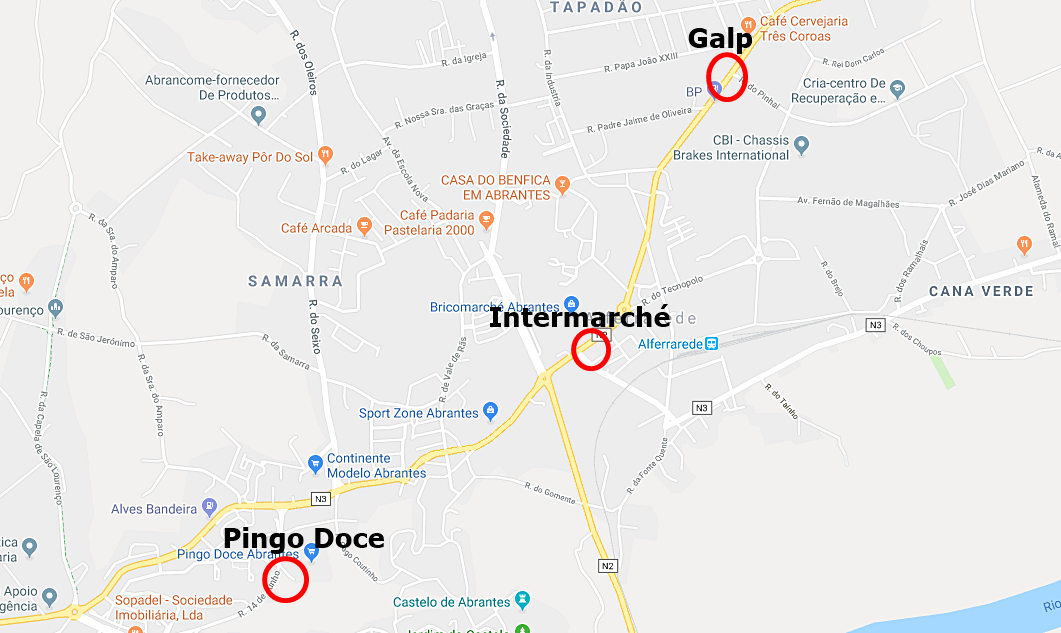 Na nossa região, Abrantes tem três pontos de abastecimento, o Pingo Doce e o Intermarché (não prioritários) e a Galp na Av. António Farinha Pereira (prioritários).