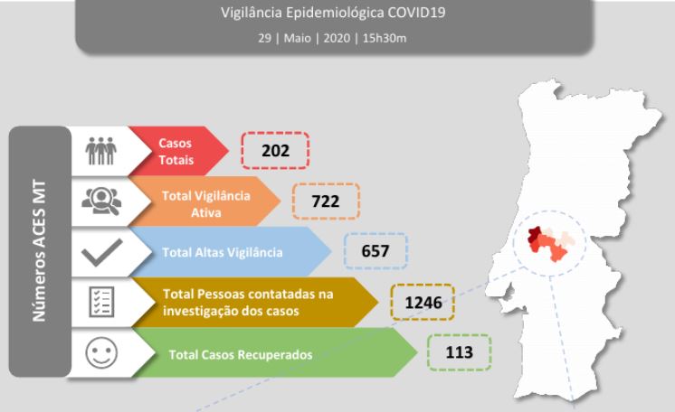 A tendência dos últimos dias de de aumento de casos de infeção por Covid-19 no Médio Tejo continua. Esta sexta-feira, 29 de maio, todos os indicadores aumentaram, desde novos casos, vigilâncias ativas e também altas desta situação, até ao número de recuperados: mais um recuperado registado nas últimas 24 horas.