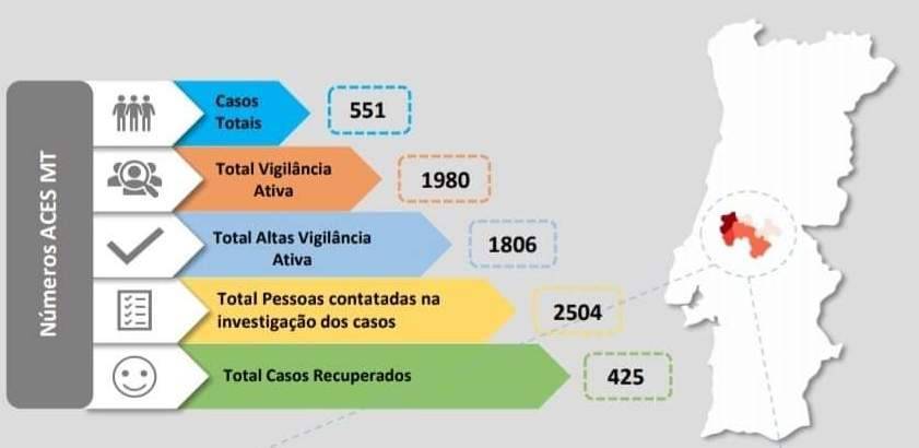 Quanto aos casos recuperados o número no Médio Tejo continua nos 425 casos.