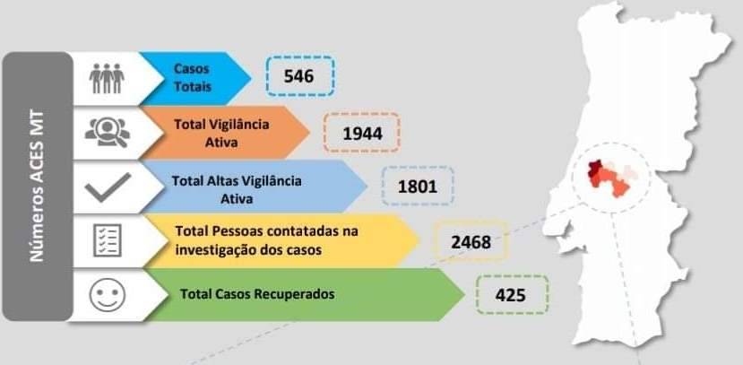 Quanto a vigilâncias ativas, neste domingo são 164, em Abrantes (35), Alcanena (1), Entroncamento (49), Mação (3), Ourém (30), Sardoal (1), Tomar (35), Torres Novas (7) e Vila Nova da Barquinha (3).