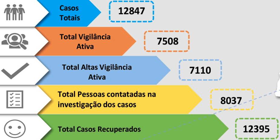 Sem alterações nos números dos casos recuperados (12 395) e óbitos (378) o número de casos ativos subiu hoje para 74. Os concelhos de Constância, Ferreira do Zêzere e Vila Nova da Barquinha não têm qualquer caso ativo ao passo que as 74 pessoas que estão infetadas e em confinamento são de Abrantes (33), Alcanena (2), Entroncamento (4), Mação (4), Ourém (14), Sardoal (3), Tomar (12) e Torres Novas (1).