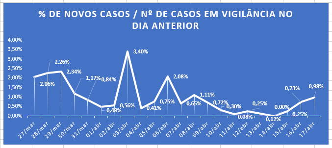 Também há uma subida de 12 casos de Vigilância Ativa oriundos de Alcanena, Ourém, Torres Novas e Vila Nova da Barquinha.