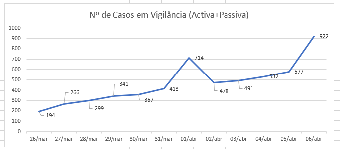 São ainda 414 as pessoas em vigilância ativa e 192 em vigilância passiva.