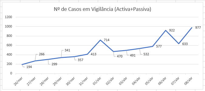 Quanto às vigilâncias passivas (192) e às altas da vigilância ativa (182) os números são os mesmos de ontem.