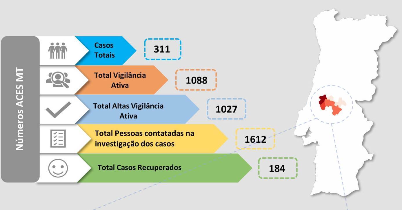 Apesar disso, o relatório epidemiológico do ACES Médio Tejo regista um aumento de mais sete pessoas que entraram em vigilância ativa, ou seja, mais sete pessoas que têm de ficar em isolamento profilático. Os casos em vigilância são dois em Abrantes, quatro em Alcanena, seis no Entroncamento, dois em Ferreira do Zêzere, um em Mação, 32 em Ourém, um em Torres Novas e oito em Vila Nova da Barquinha. No total são 56 pessoas que estão em isolamento a fazer o período de quarentena.