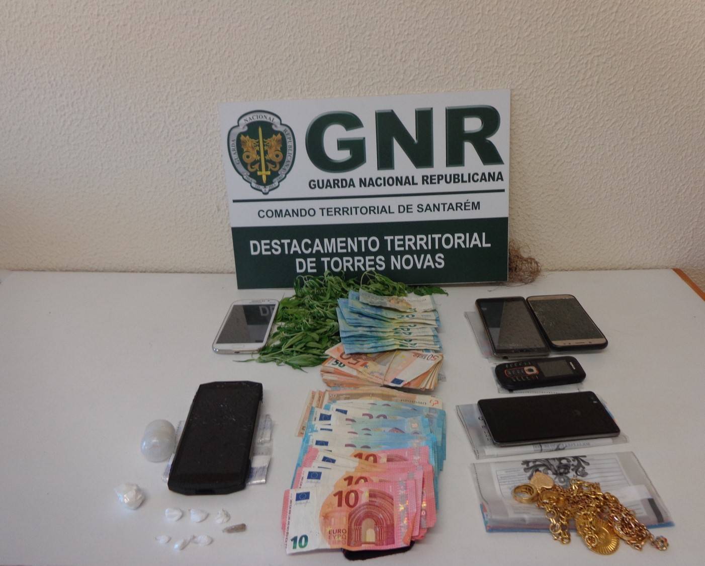 No âmbito da investigação por tráfico de estupefacientes, que decorria há um ano e meio, uma força da Guarda, constituída por diversas valências policiais do Comando Territorial de Santarém, deu cumprimento a quatro mandados de busca domiciliária e a sete mandados de busca a uma arrecadação e a seis veículos, tendo culminado na apreensão de 3.700 euros em numerário; 30 doses de cocaína; Quatro plantas cannabis; Uma balança de precisão; Um veículo; Seis telemóveis; Dois cartuchos de 9 mm e várias peças em ouro.