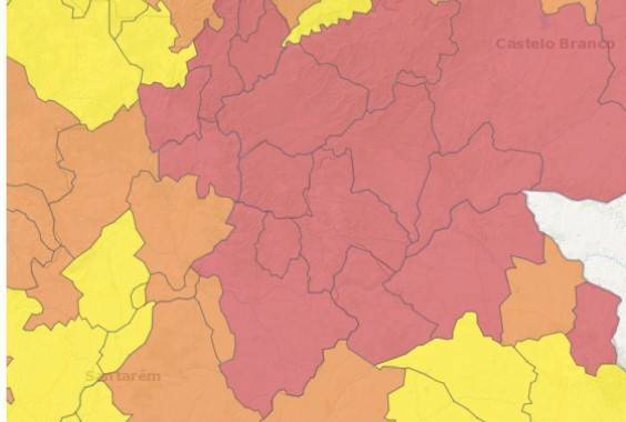 Em risco muito elevado estão 31 concelhos do Algarve, Alentejo, Interior Norte e Centro do país. Na região Abrantes, Mação, Sardoal, Vila de Rei e Gavião apresentam risco muito elevado.