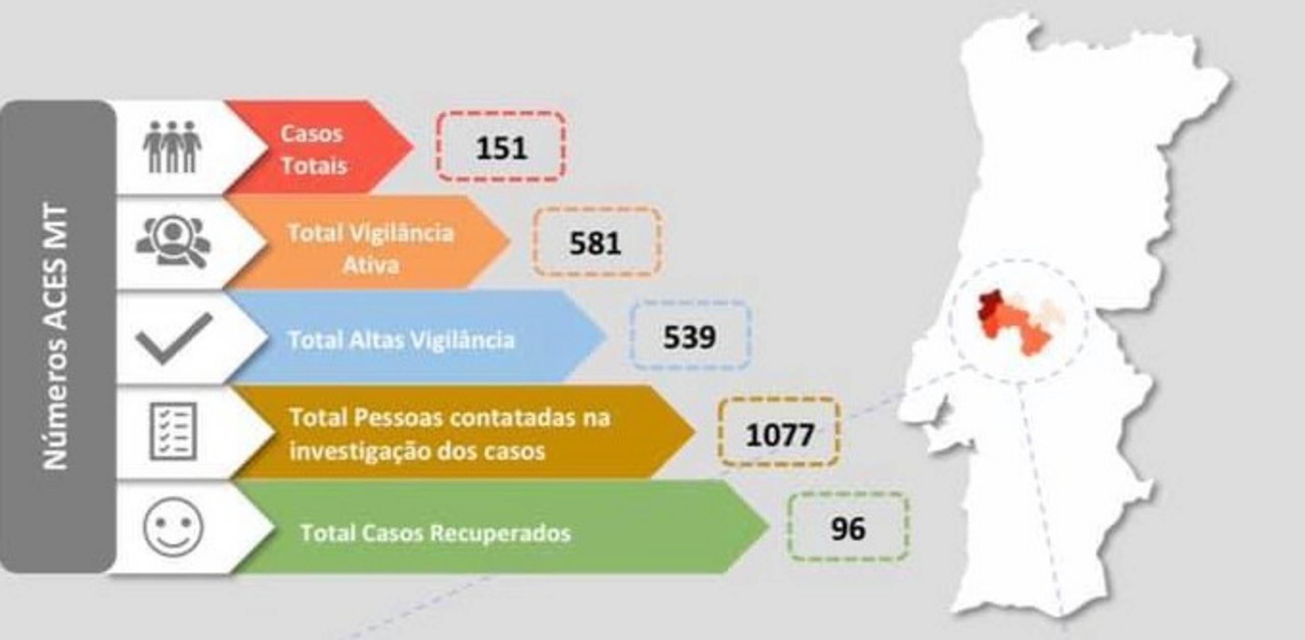 Veja aqui os casos positivos e as vigilâncias ativas por concelho: