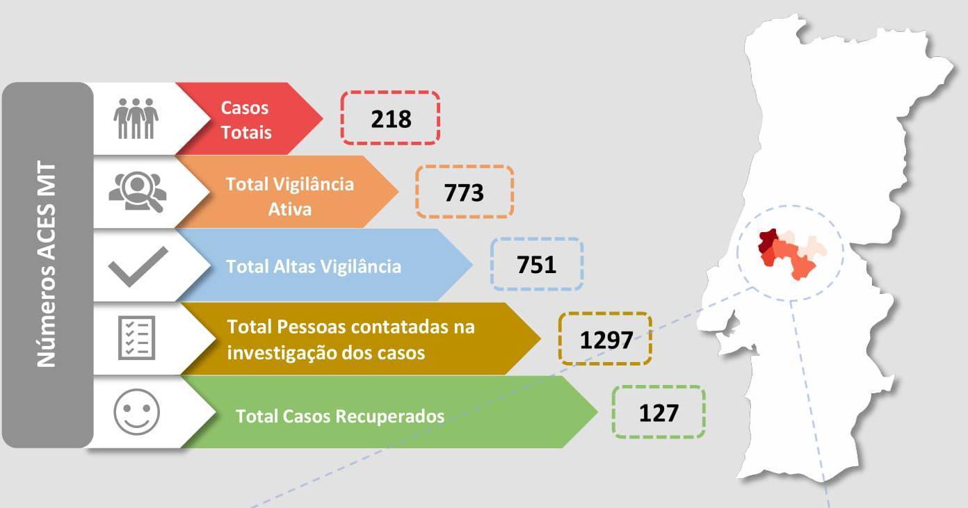Os casos de vigilâncias que estão ativas neste momento situam-se em Abrantes (7), Entroncamento (5), Sardoal (1), Tomar (2) e Torres Novas (9).