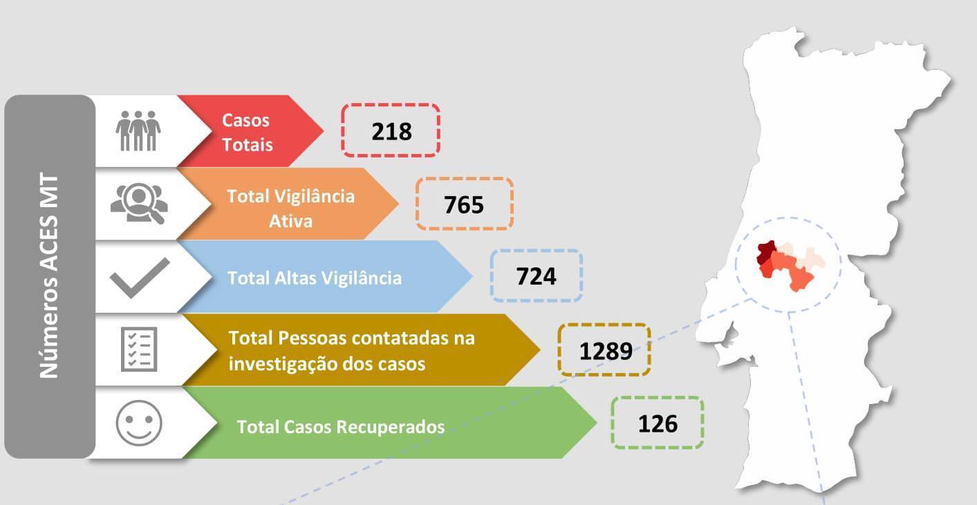 Ao nível das vigilâncias ativas, o total de pessoas que estiveram em isolamento é de 265, mas apenas 41 é que se encontram a cumprir o período de quarentena obrigatória por terem contactado com portadores do vírus.