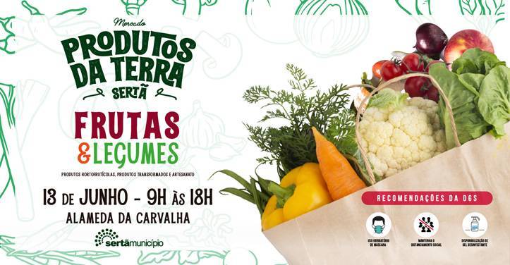 A Alameda da Carvalha, na Sertã, recebe domingo, dia 13 de junho, mais um mercado mensal de Produtos da Terra, entre as 9 e as 18 horas, desta feita dedicado às “Frutas e Legumes”. Para além do produto em destaque, poderão também ser adquiridos produtos transformados e artesanato.