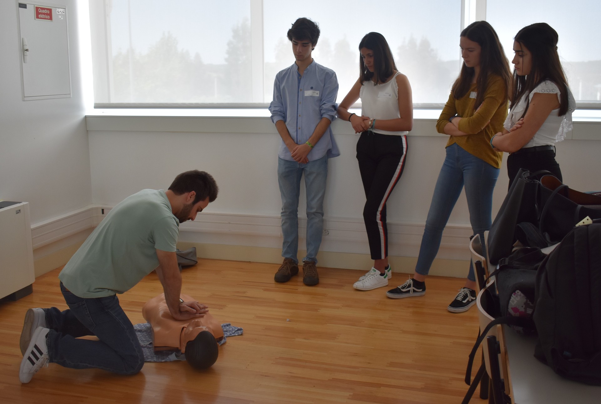 Nesta ação, os alunos foram desafiados a “conseguirem avaliar e detetar uma situação de emergência, nomeadamente em paragem cardio-respiratória e, com os seus próprios meios, ou seja, o seu corpo, os seus braços e as suas mãos, ajudarem aquele coração a manter-se ativo e a bombear sangue para quando chegarem os meios de emergência, essa vítima tenha mais e melhores condições de ser recuperada”.