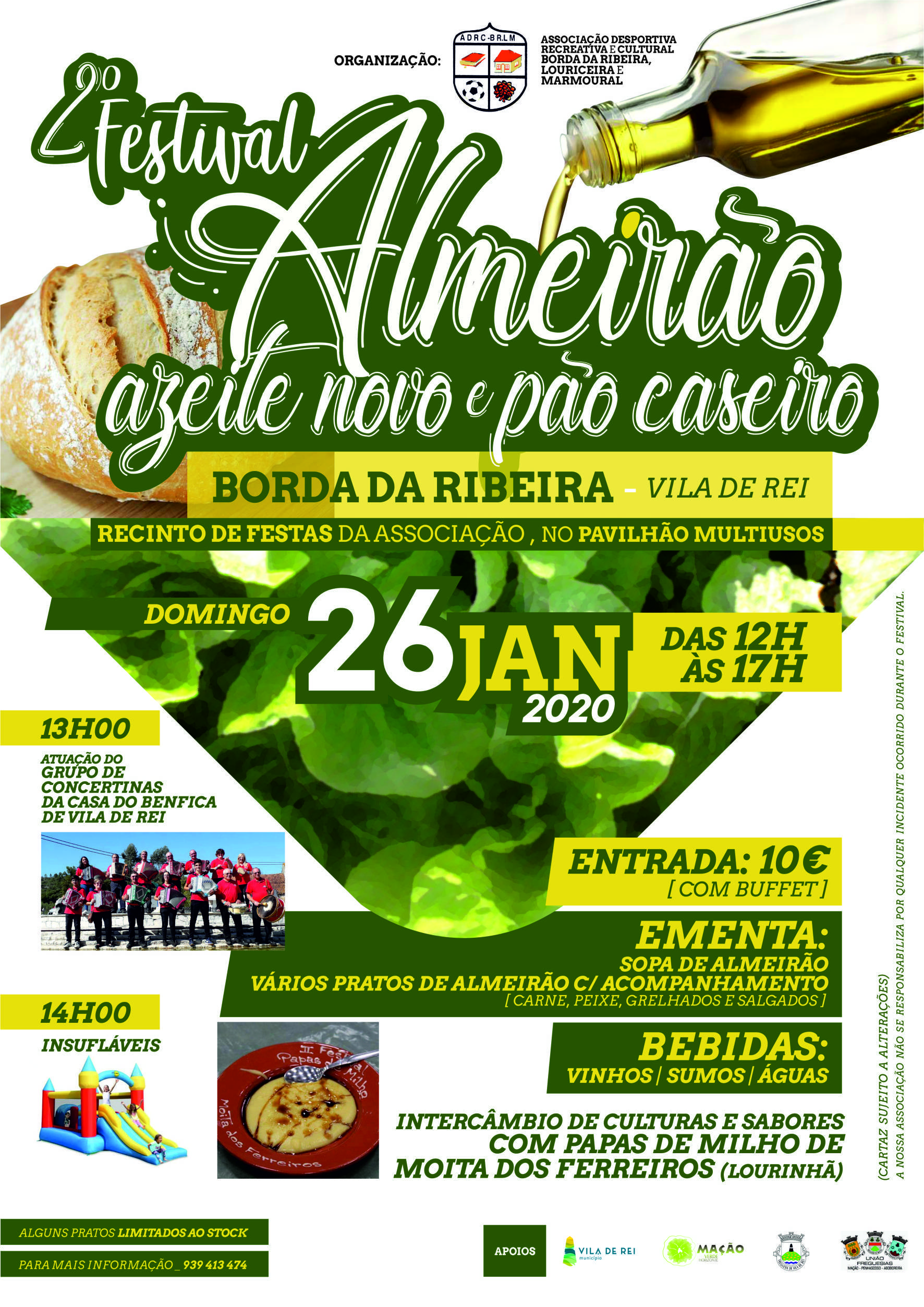 A entrada tem o custo de 10€ nesta edição que se destaca pela existência de um intercâmbio de culturas e sabores: é que além dos anfitriões, vão estar também presentes as papas de milho de Moita dos Ferreiros (Lourinhã).