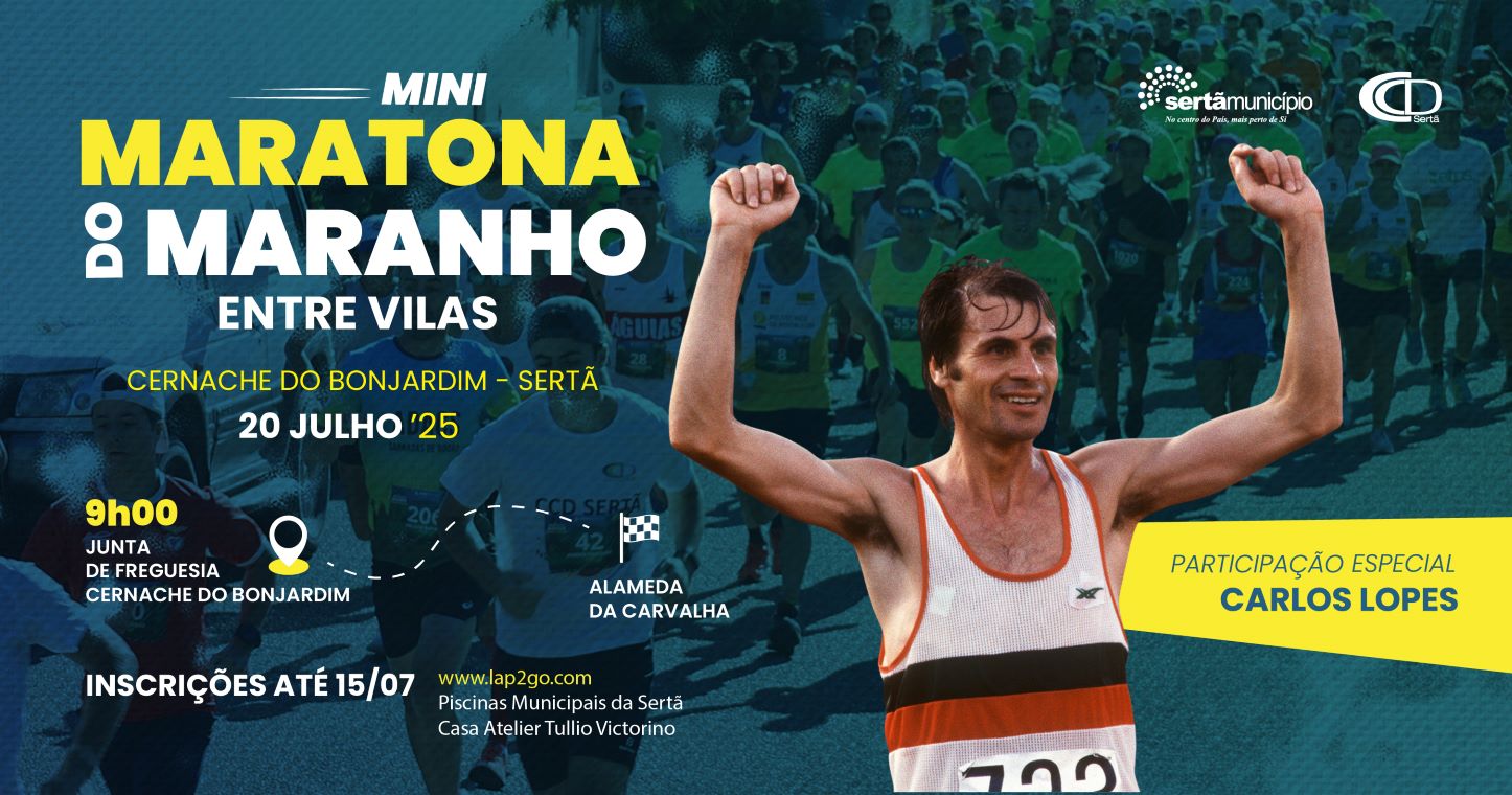 A Mini Maratona do Maranho Entre Vilas, que se realiza no próximo dia 20 de julho, vai contar com a presença de Carlos Lopes. Este campeão olímpico português e referência no atletismo mundial vai estar presente no arranque e na entrega de prémios da prova que vai ligar as vilas de Cernache do Bonjardim e Sertã, num percurso de cerca de 10 km. A prova inicia-se às 9 horas, junto à sede da União de Freguesias em Cernache do Bonjardim, contando com a organização do Centro de Cultura e Desporto do Pessoal da Câmara Municipal da Sertã, apoio do Município da Sertã e organização técnica da Lap2Go.