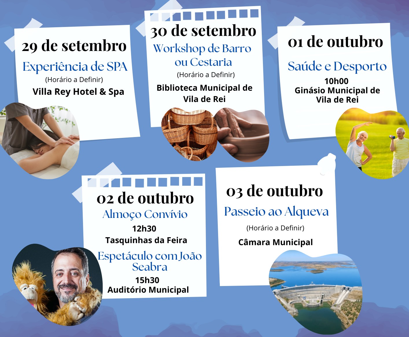 Dia 2 de outubro – Almoço-convívio nas tasquinhas da feira, seguido de espetáculo com o humorista João Seabra, no Auditório Municipal;