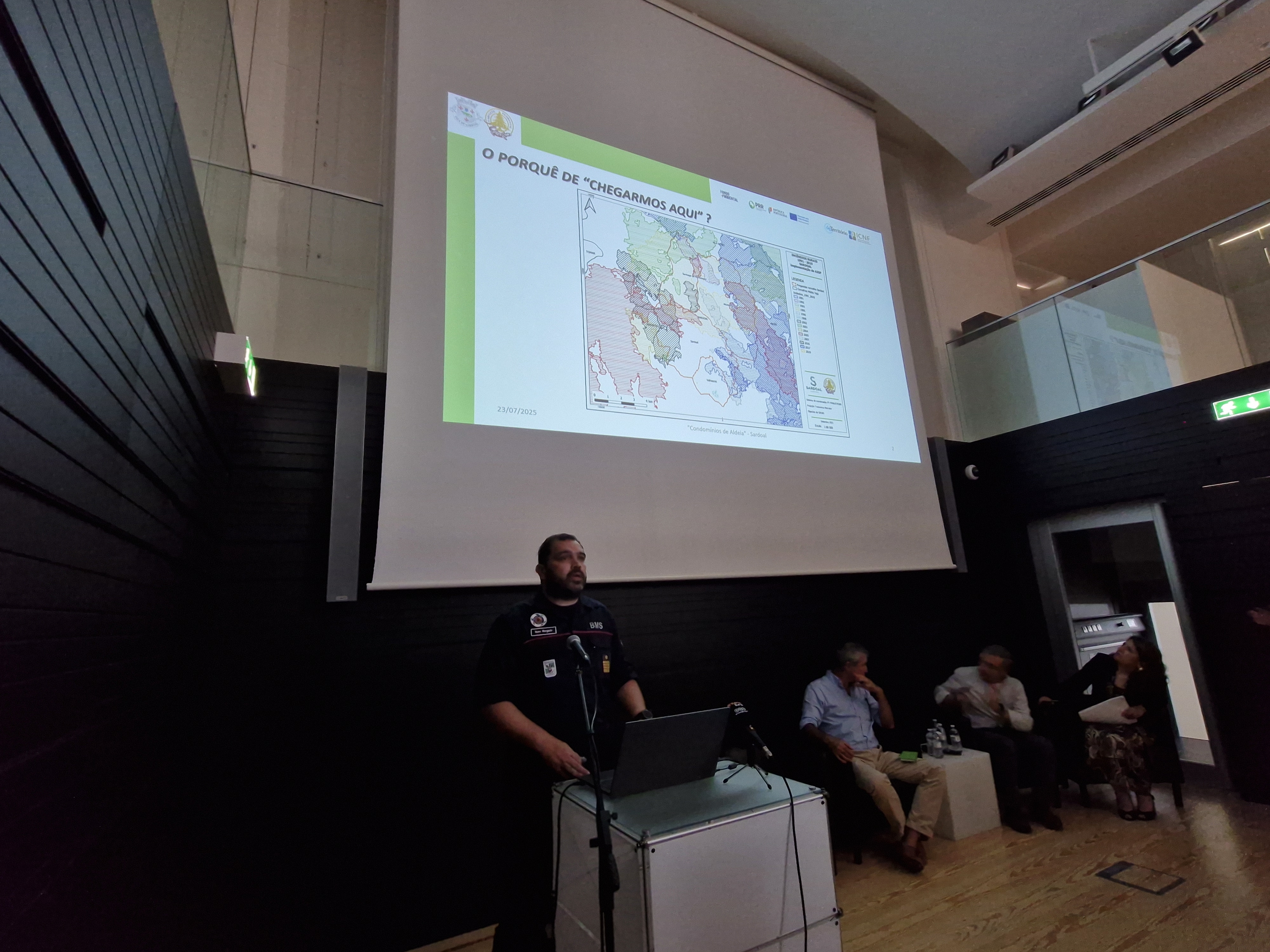 Nuno Morgado, comandante dos Bombeiros Municipais de Sardoal, deu depois conta do trabalho que têm vindo a fazer no concelho, junto da comunidade e da dificuldade em convencer as pessoas a aderirem pois só avançam com o consentimento dos proprietários.