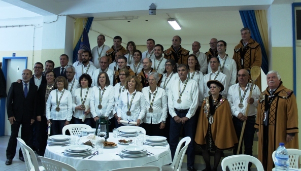 Para apadrinhar este ato formal que torna os 24 pegachos confrades, receberam o diploma e a insígnia [medalha] que vão usar ao peito nos atos formais, foi convidada a Confraria do Leitão da Bairrada.