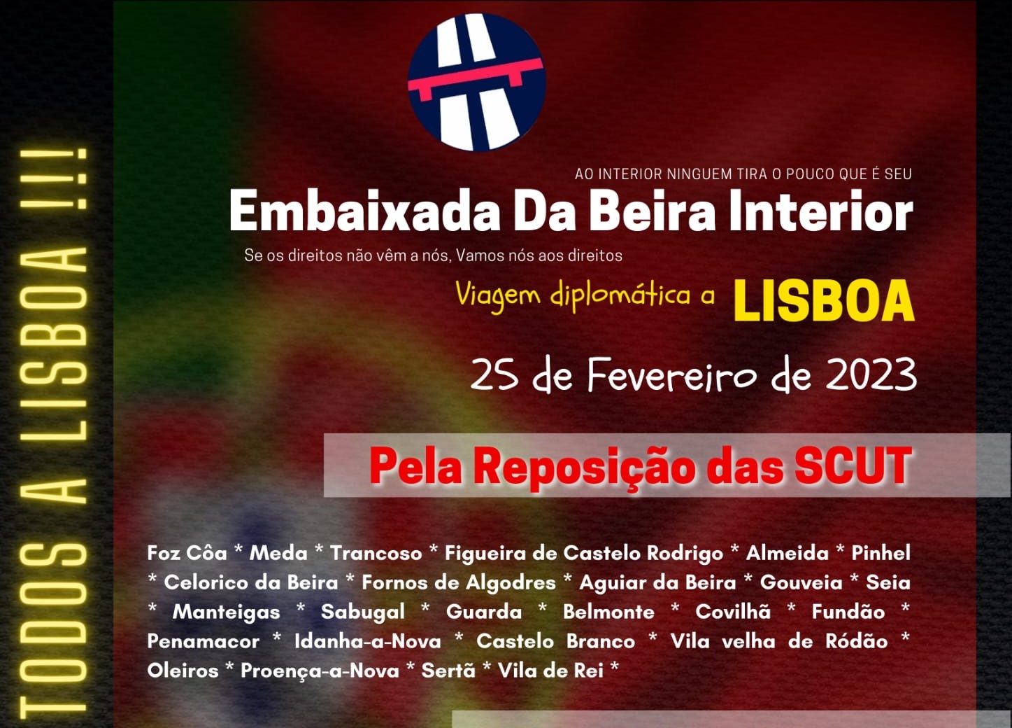 A Plataforma P’la Reposição das SCUTs na A23 e A25 vem informar que a iniciativa Embaixada da Beira Interior a Lisboa, anunciada para o dia 11 de Fevereiro, passou para o dia 25 de Fevereiro.