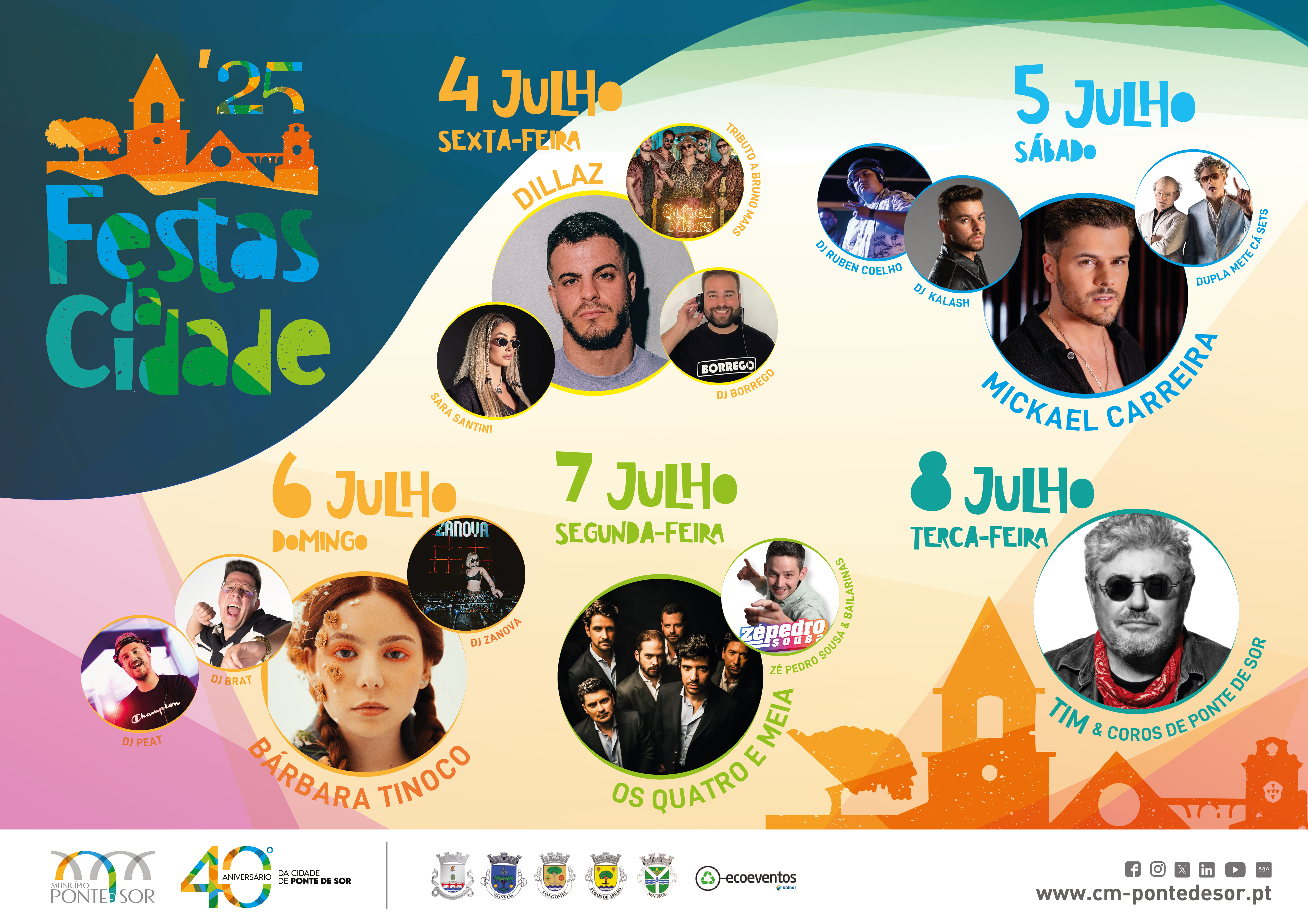 As Festas da Cidade - edição de 2025, no ano em que se comemoram quarenta anos de elevação de Ponte de Sor a cidade, um dos acontecimentos marcantes no início do Verão de cada ano, vão decorrer, uma vez mais, num dos lugares mais aprazíveis da cidade, a Zona Ribeirinha.