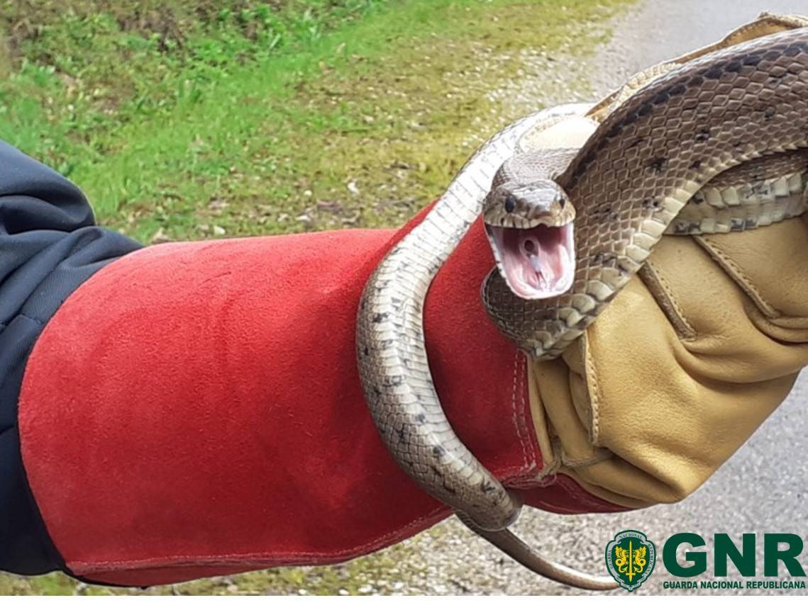 No seguimento de um alerta que estaria uma cobra no interior de uma obra, os militares da Guarda deslocaram-se ao local e verificaram que se tratava de uma cobra-de-escada que estava presa no interior da construção habitacional.