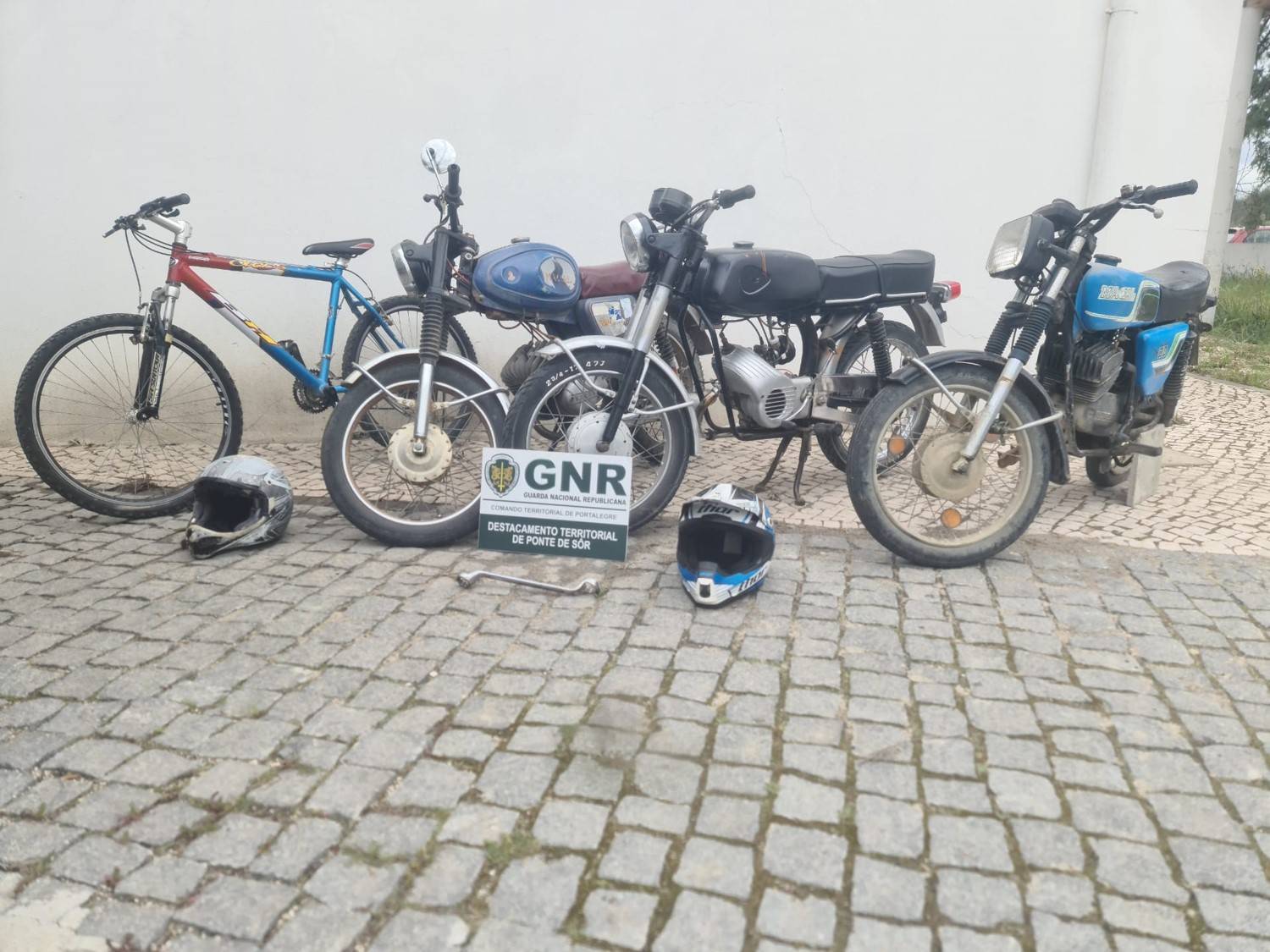 A GNR recuperou três ciclomotores, um dos quais furtado em Ponte de Sor e os outros dois na zona de Abrantes (Santarém), dois capacetes, uma bicicleta e uma chave de estrias.