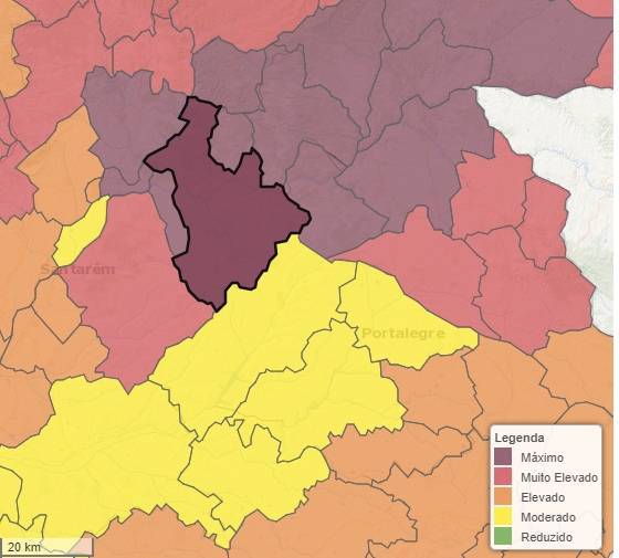 Em risco muito elevado o IPMA colocou cerca de uma centena de municípios dos distritos de Bragança, Vila Real, Braga, Porto, Guarda, Coimbra, Viseu, Leiria, Castelo Branco, Santarém, Portalegre e Faro.