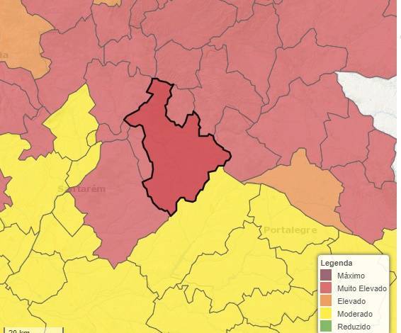 Este risco, determinado pelo IPMA, tem cinco níveis, que vão de reduzido a máximo.