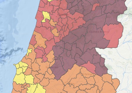 Mais de 60 concelho dos distritos de Bragança, Vila Real, Viseu, Guarda, Aveiro, Coimbra, Santarém, Castelo Branco, Portalegre e Faro estão hoje em perigo máximo de incêndio, segundo o IPMA, que prevê um agravamento deste risco nos próximos dias.
