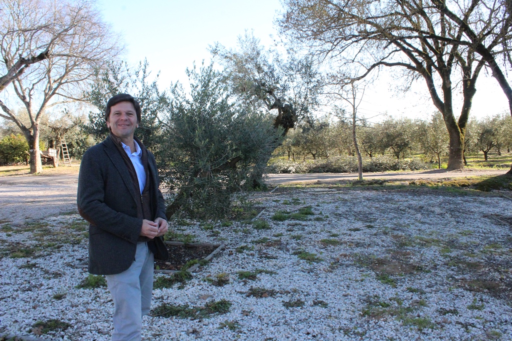 Primeira nota é o olhar para o olival, de oliveira galega. Percebe-se de imediato o tipo de oliveira que temos na região. Junto a um pequeno jardim, entre a o estacionamento e a entrada da Herdade, Rui Pereira Coutinho começa a explicação. “Este é o nosso jardim-montra. Temos aqui sete oliveiras, um exemplar de todas as que temos na herdade. São três variedades espanholas, uma grega e uma italiana. Depois as portuguesas: Galega e Cobrançosa. O nosso olival tem as três formas de cultivo, normal, intensivo e super-intensivo.”