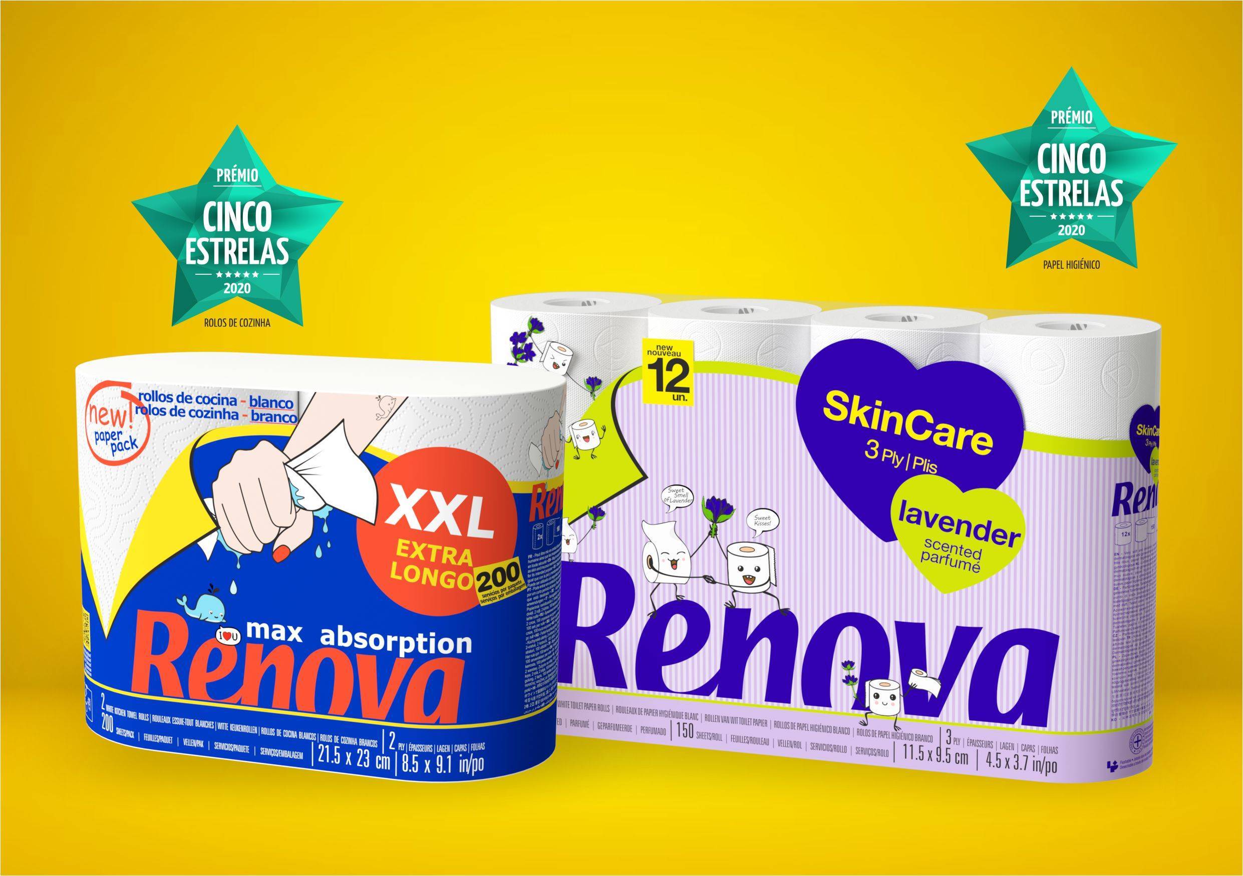 A Renova conquistou dois galardões nos Prémios Cinco Estrelas nas categorias de Rolo Cozinha e Papel Higiénico. Os Rolos de Cozinha embalados em papel Renova Max Absorption XXL Paper Pack e o Papel Higiénico Renova Skin Care Lavender foram os produtos premiados. Este é 6º ano consecutivo em que a Renova é distinguida nos Prémios Cinco Estrelas e a primeira vez que é premiada em duas categorias.