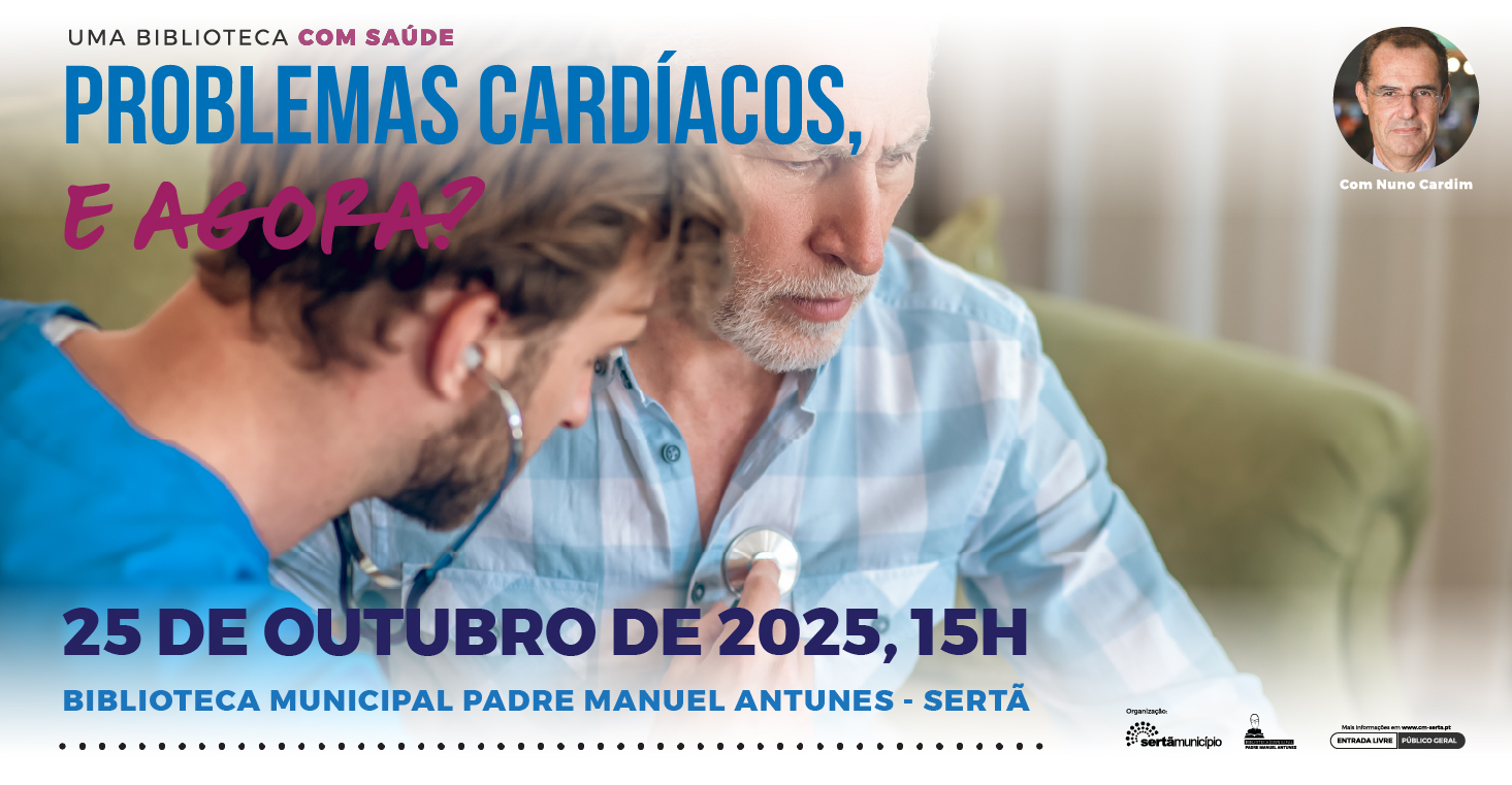 O médico cardiologista Nuno Cardim é o próximo convidado da iniciativa “Uma Biblioteca com Saúde”, que se realiza a 25 de outubro, pelas 15 horas, na Biblioteca Municipal Padre Manuel Antunes, na Sertã.