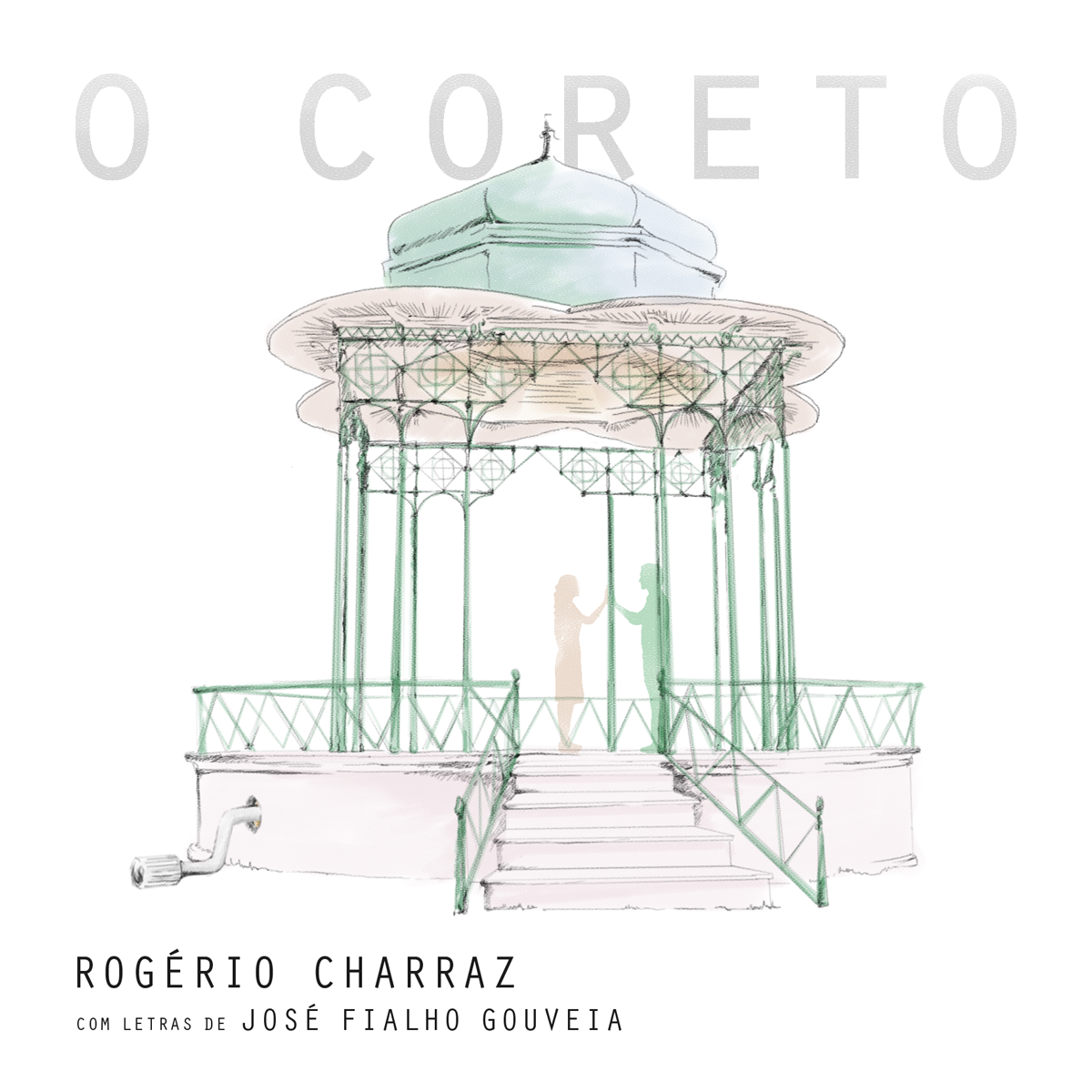 "O Coreto", de Rogério Charraz com letras de José Fialho Gouveia, tem capa da autoria de Camila Beirão dos Reis, que também assina as ilustrações e o 'layout'.