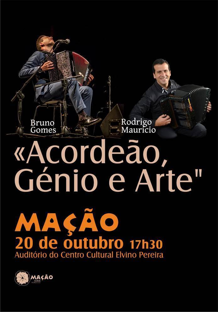 O Projeto "Acordeão, Génio e Arte" vem a Mação dia 20 de outubro 2019 e promete proporcionar uma tarde repleta de animação, em que o rei da festa é o acordeão mas onde os génios são os músicos Bruno Gomes e Rodrigo Maurício, campeões nacionais e internacionais nesta arte.