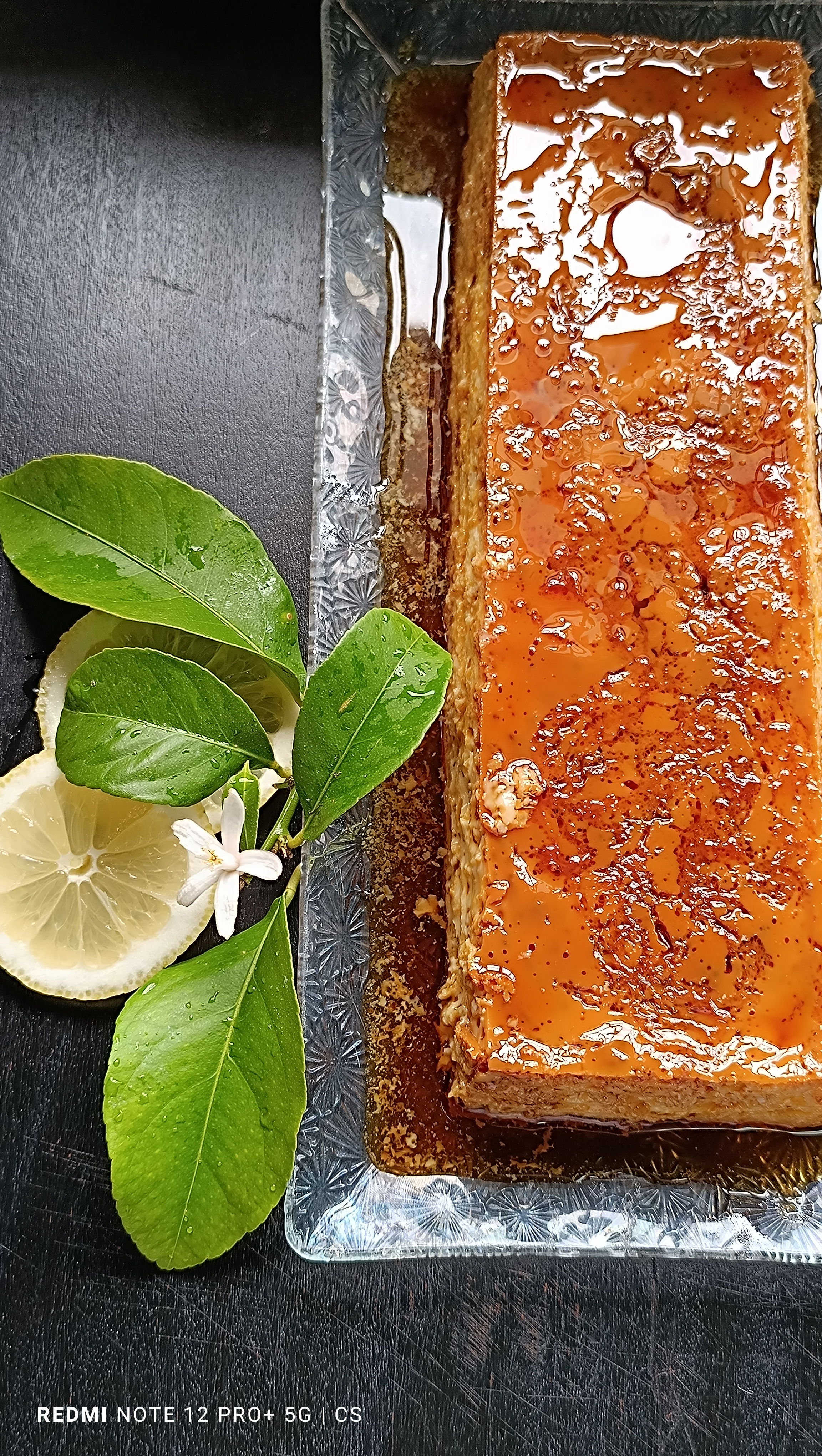 Pré aqueça o forno a 180º. Forre uma forma de Bolo Inglês com caramelo e Reserve.