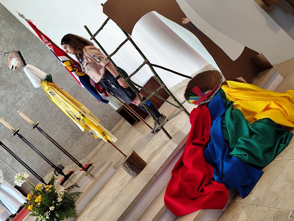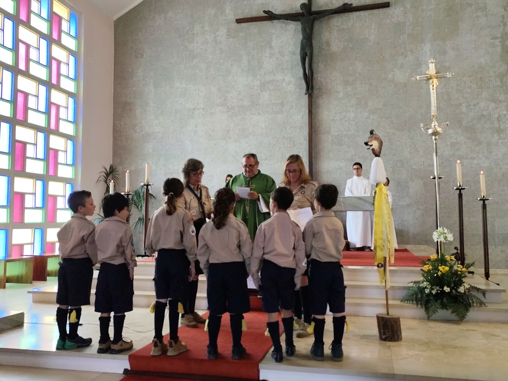 No domingo de manhã, durante a Eucaristia, presidida pelo Pároco de Mouriscas, Francisco Valente, que ostentava também o lenço verde de dirigente escutista, seis crianças (dos 6 aos 10 anos) fizeram a promessa e receberam o lenço amarelo para poderem integrar a alcateia dos Lobitos. E houve também outras duas (10 aos 14 anos) que receberam o lenço verde para poderem integrar as patrulhas dos Exploradores.
