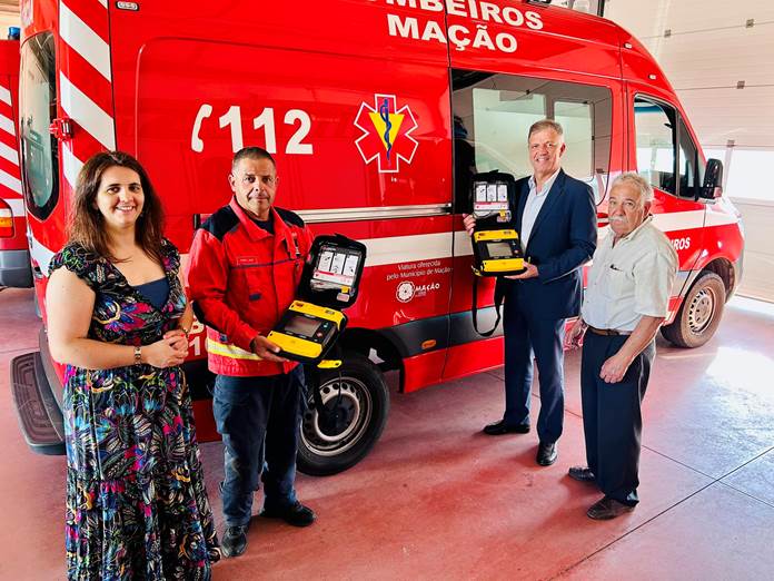 O presidente e a vice-presidente da Câmara Municipal de Mação entregaram, no dia 12 de julho, dois Desfibrilhadores Automáticos Externos (DAE) ao presidente da Direção e ao comandante dos Bombeiros Voluntários de Mação.