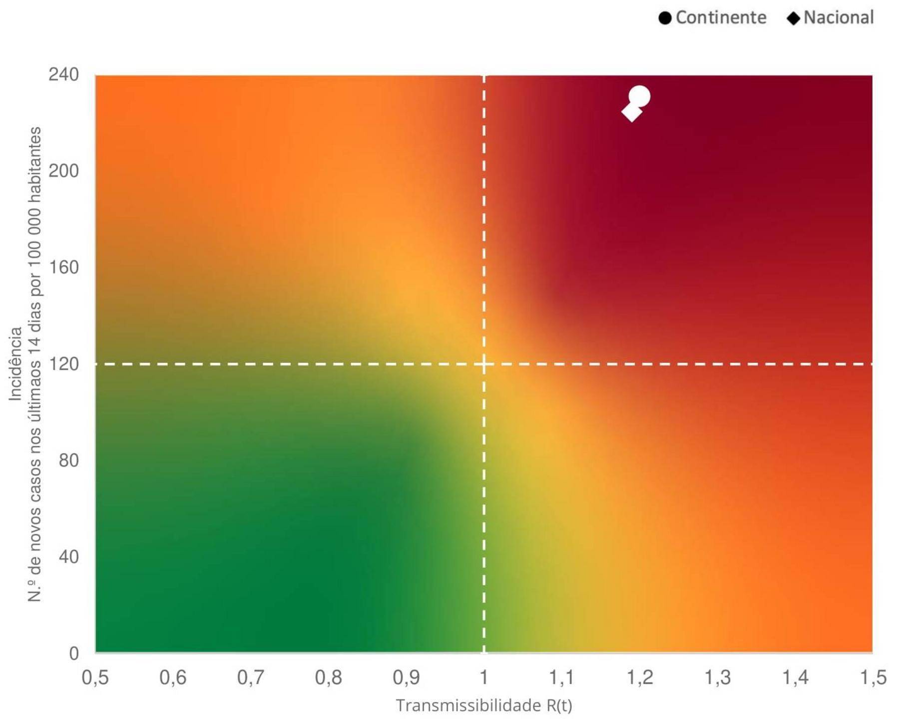 Os dados do índice de transmissibilidade e da incidência a 14 dias são atualizados à segunda-feira, quarta-feira e sexta-feira.